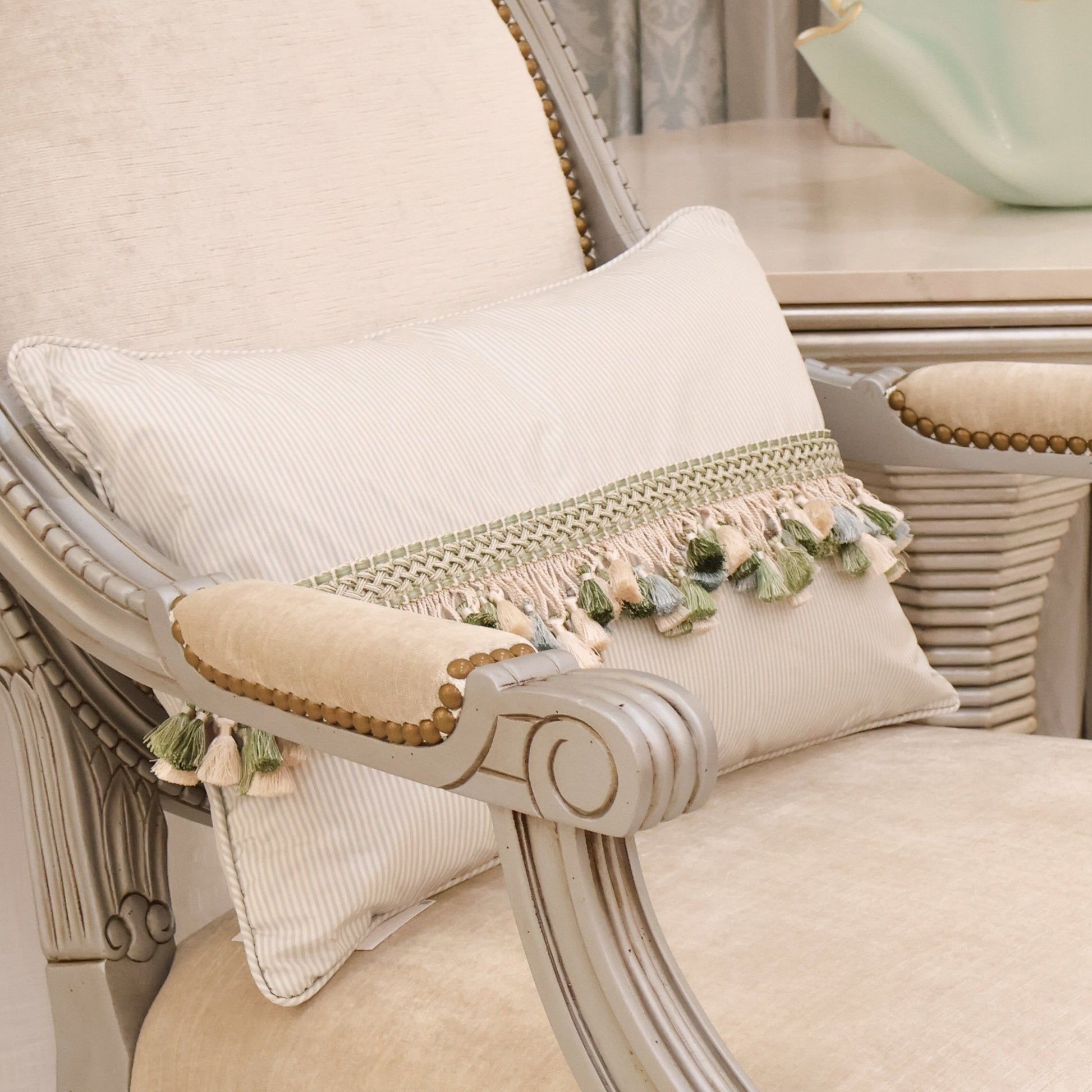Stripe Silk Tassel Trim Lumbar