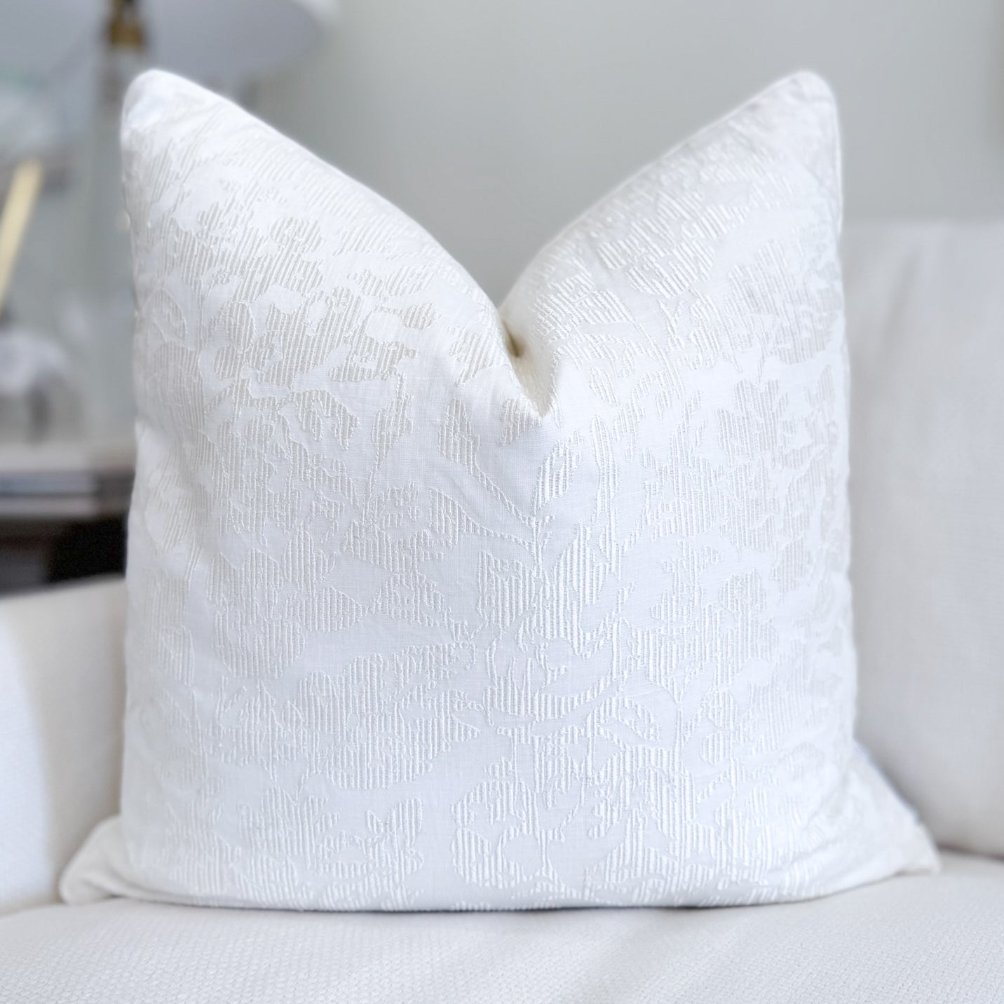 French Cream Embroidered Linen Pillow