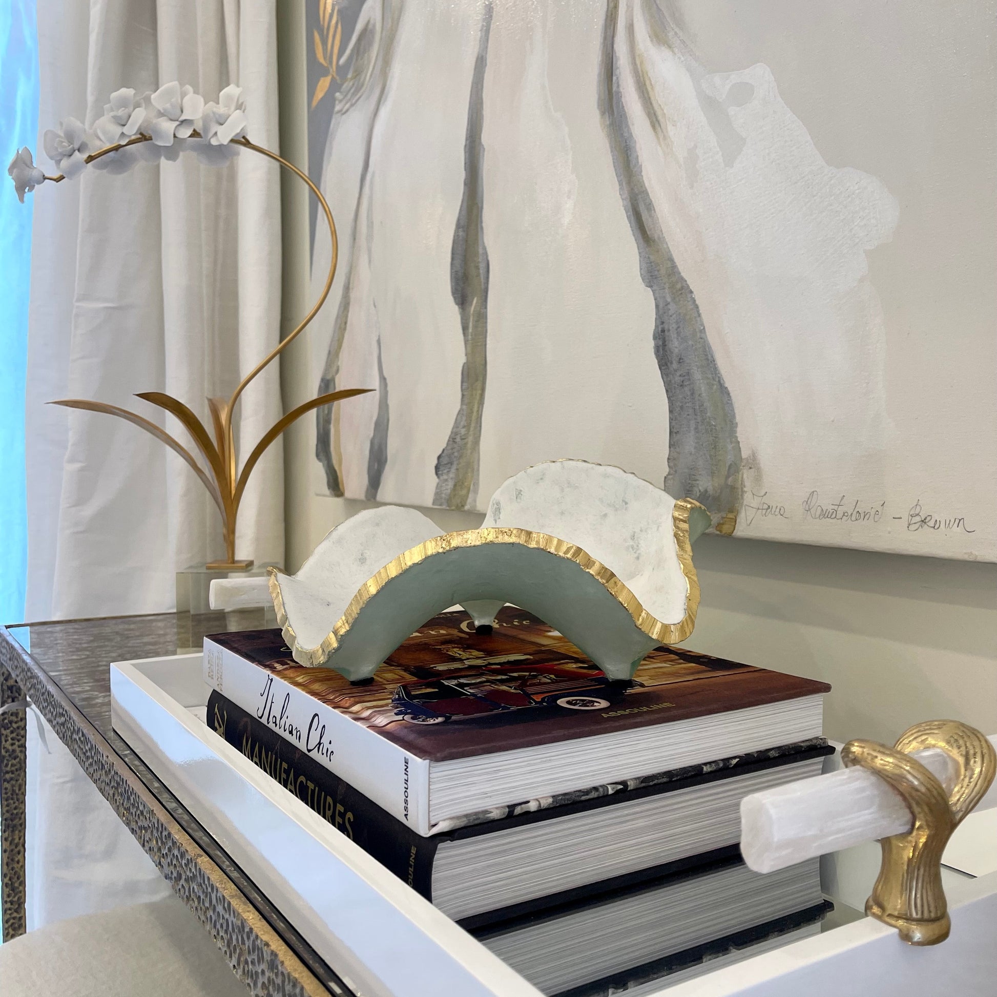 White Tray w/Selenite Handles